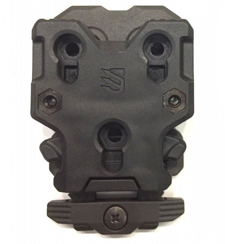 El adaptador MOLLE de las fundas T-Series de Blackhawk ofrece una solución de transporte ajustable para aplicaciones basadas en MOLLE. El diseño compacto utiliza solo dos filas de MOLLE, mientras que el diseño de trinquete se ajusta a varios diseños MOLLE y elimina cualquier exceso de movimiento. Un solo punto de rotación permite al usuario seleccionar el ángulo preferido para la instalación. Los kits incluyen 1 horquilla adaptadora MOLLE, 1 hembra QD2 y 1 macho QD2.