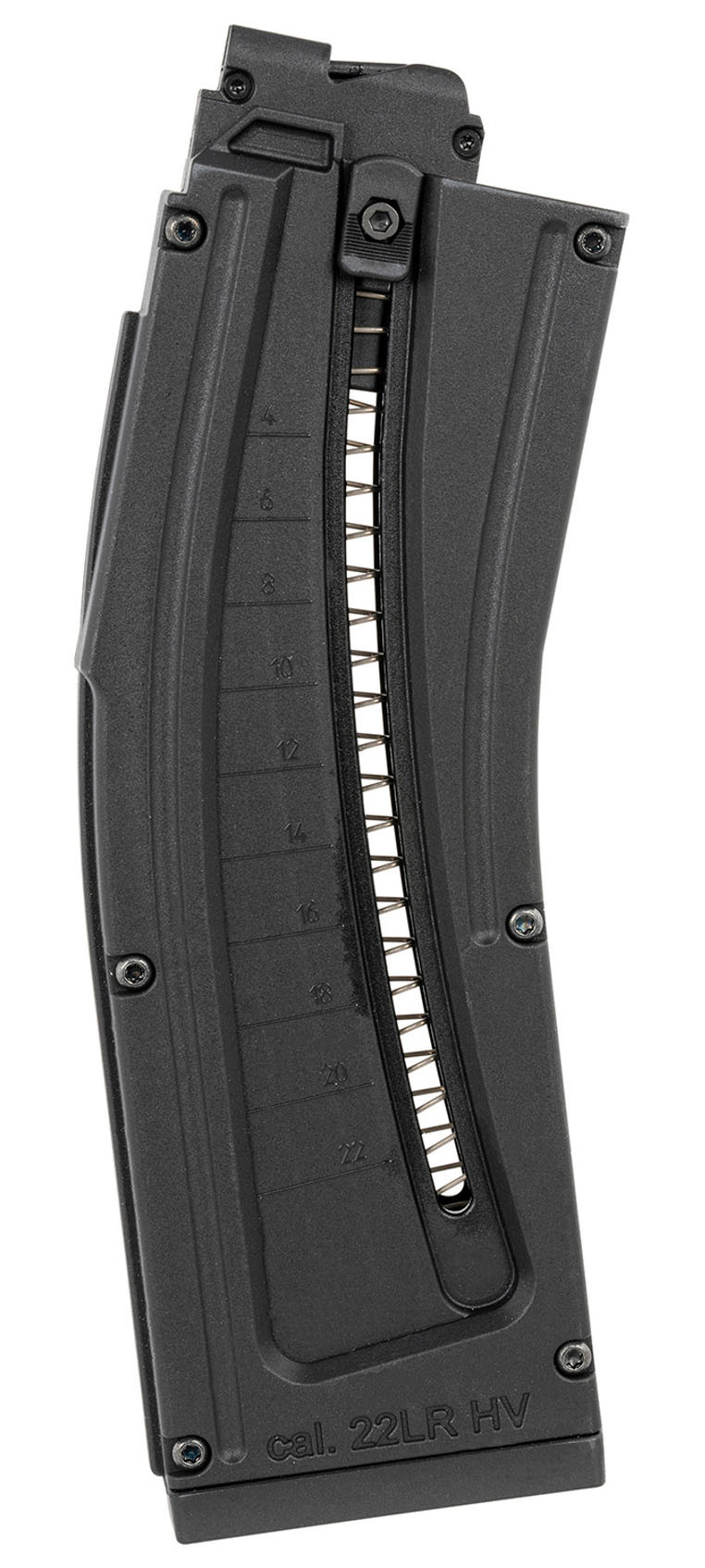 Cargador original de 22 balas para el rifle ISSC MK22 .22LR en color negro. Fabricado con un polímero resistente, cuenta con un soporte para el pulgar de longitud completa y es totalmente desmontable para su limpieza.