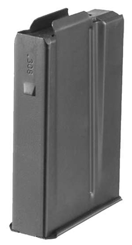 Cargador mono hilera de 10 balas en calibres 308 Win. para rifles Ruger Precision. El cargador metálico tiene un acabado de nitruro negro revestido de teflón.