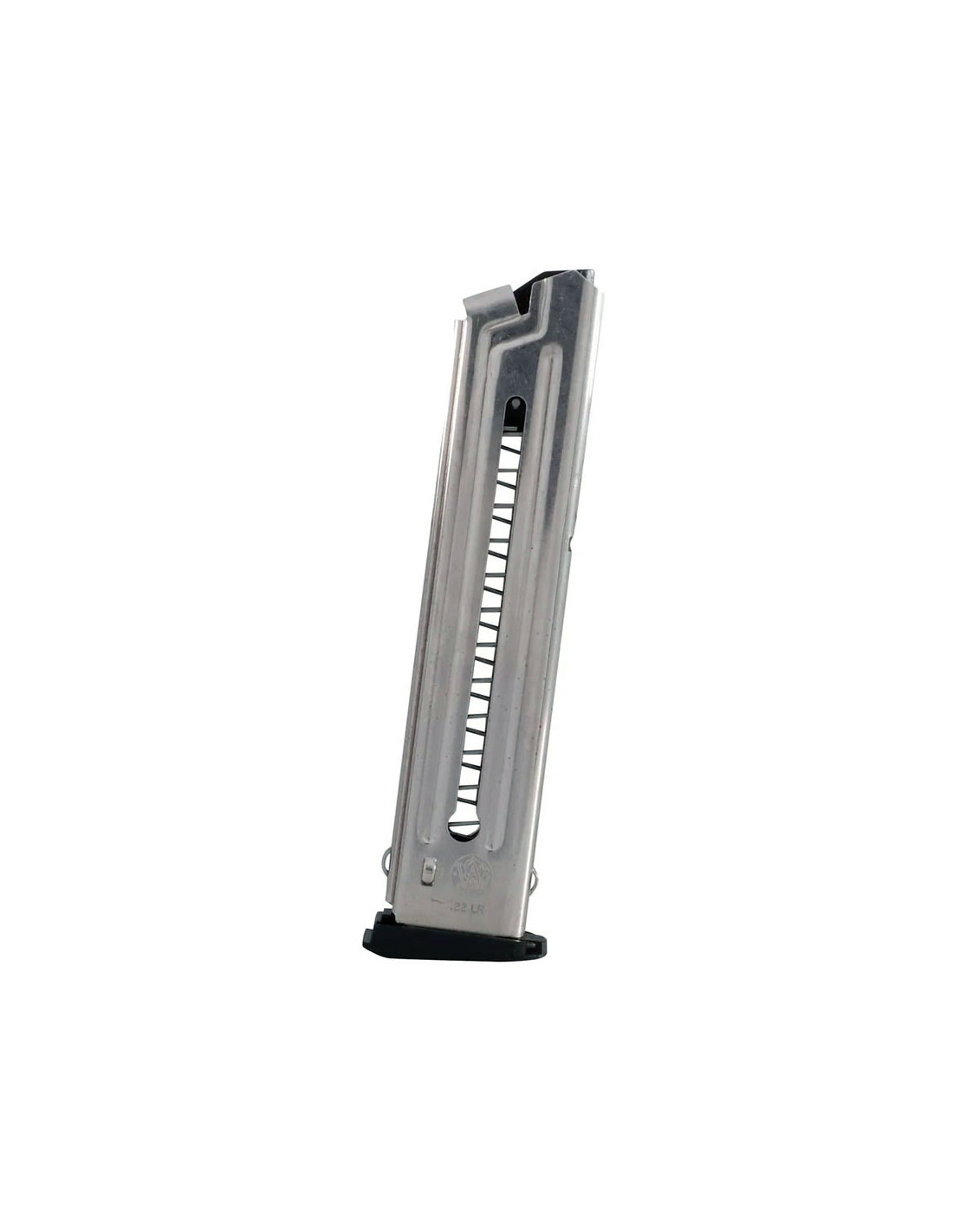 Cargador del calibre 22 LR. de acero inoxidable con capacidad para 10 balas. Valido para pistolas Smith & Wesson 22A y 22S. Palanca de carga incorporada y resorte de acero. Accesorio de fábrica original Smith & Wesson.