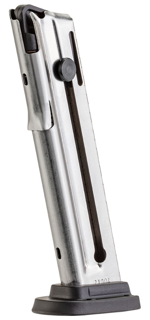 Cargador del calibre 22 LR. de acero inoxidable con capacidad para 10 balas. Valido para pistolas Smith & Wesson M&P22. Palanca de carga incorporada y resorte de acero. Accesorio de fábrica original Smith & Wesson.
