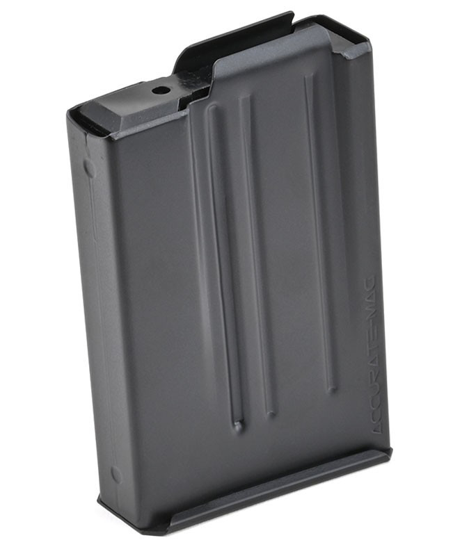 Cargador metálico con capacidad para 10 cartuchos.