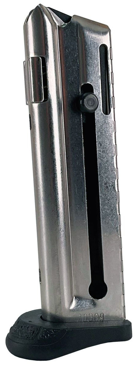 Cargador metálico con base extendida para Walther P22Q y P22QD del calibre 22LR. La capacidad del cargador es de 10 balas.