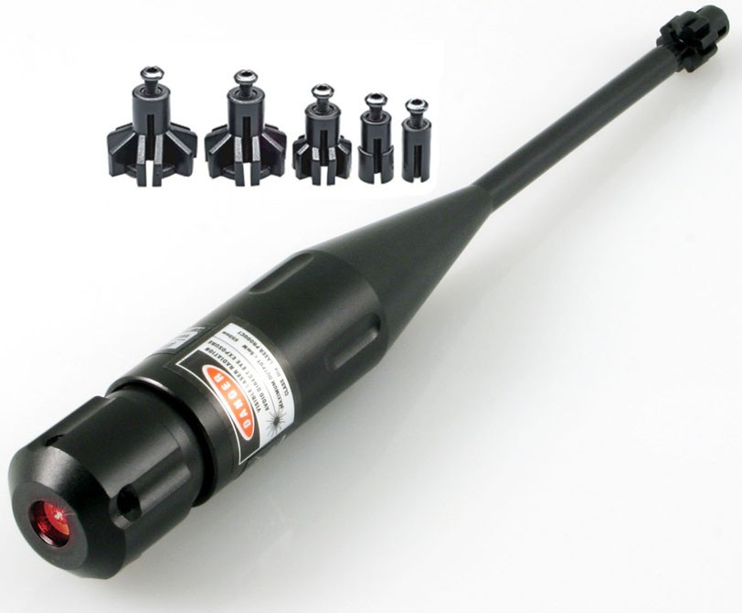 Su brillante láser de funcionamiento con pilas realiza la tarea del colimador de forma rápida y extremadamente precisa. Fabricado para satisfacer las exigencias de armeros y tiradores estrictos, incluye varillas para armas de fuego del calibre .22 al .50 y adaptadores para escopeta del calibre .12 y .20.