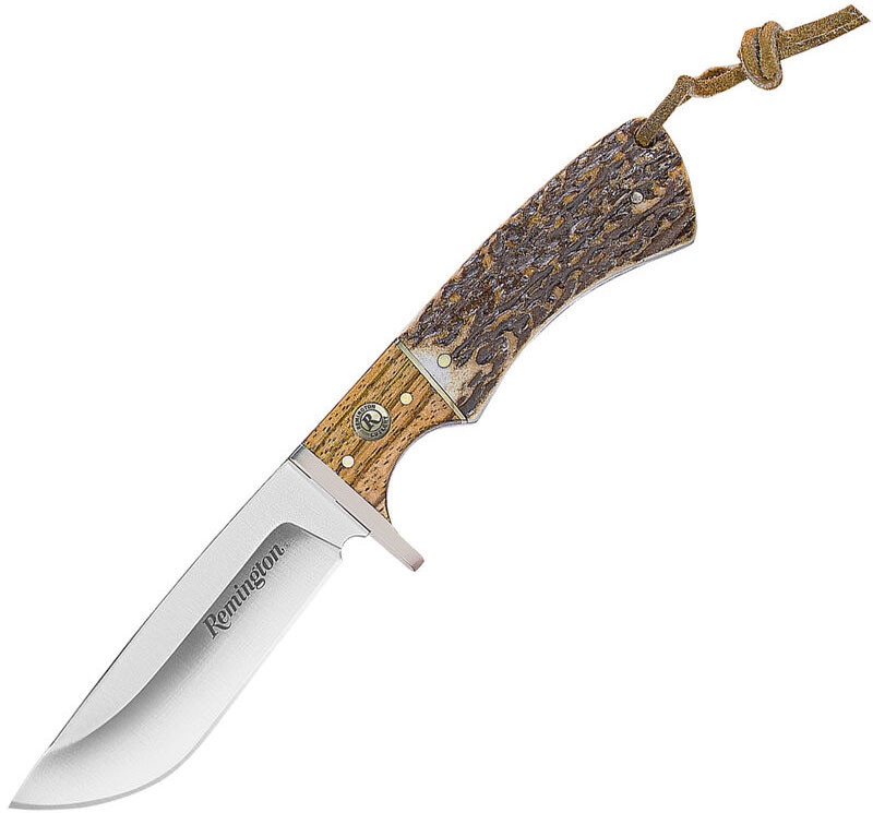 Las cuchillos Remington son meticulosamente elaborados con materiales de alta calidad para garantizar una larga vida. Los cuchillos de la serie Guide de Remington presentan mangos de madera estilo asta de ciervo y un medallón de oro incrustado con refuerzos y espaciadores de alpaca. Las hojas están hechas de acero inoxidable 440 para una durabilidad excepcional.