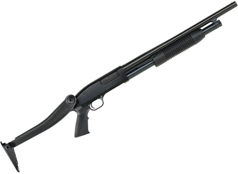 Con la incorporación de la culata plegable superior Shotforce® de ATI, esta Maverick 88 se puede transportar de forma compacta en su posición plegada o en una configuración de empuñadura de pistola plegando la culata por la parte superior, evitando interferencia con la operación del arma, pudiendo apuntar y disparar indistintamente con la culta plegada o extendida. Para disparar desde una posición montada en el hombro, simplemente baje la culata presionando el botón de liberación rápida. La culata está construida en polímero reforzado y presenta una empuñadura de pistola con textura.