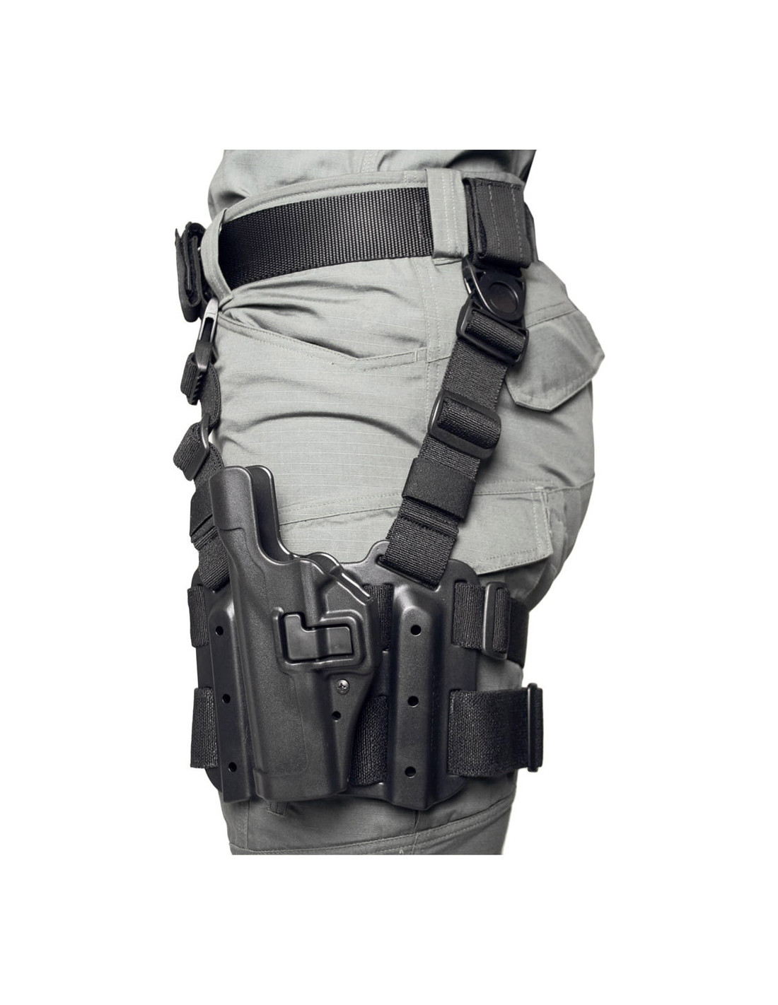 El cierre SERPA® asegura el arma firmemente permitiendo una liberación ergonómica con solo apretar con el dedo.