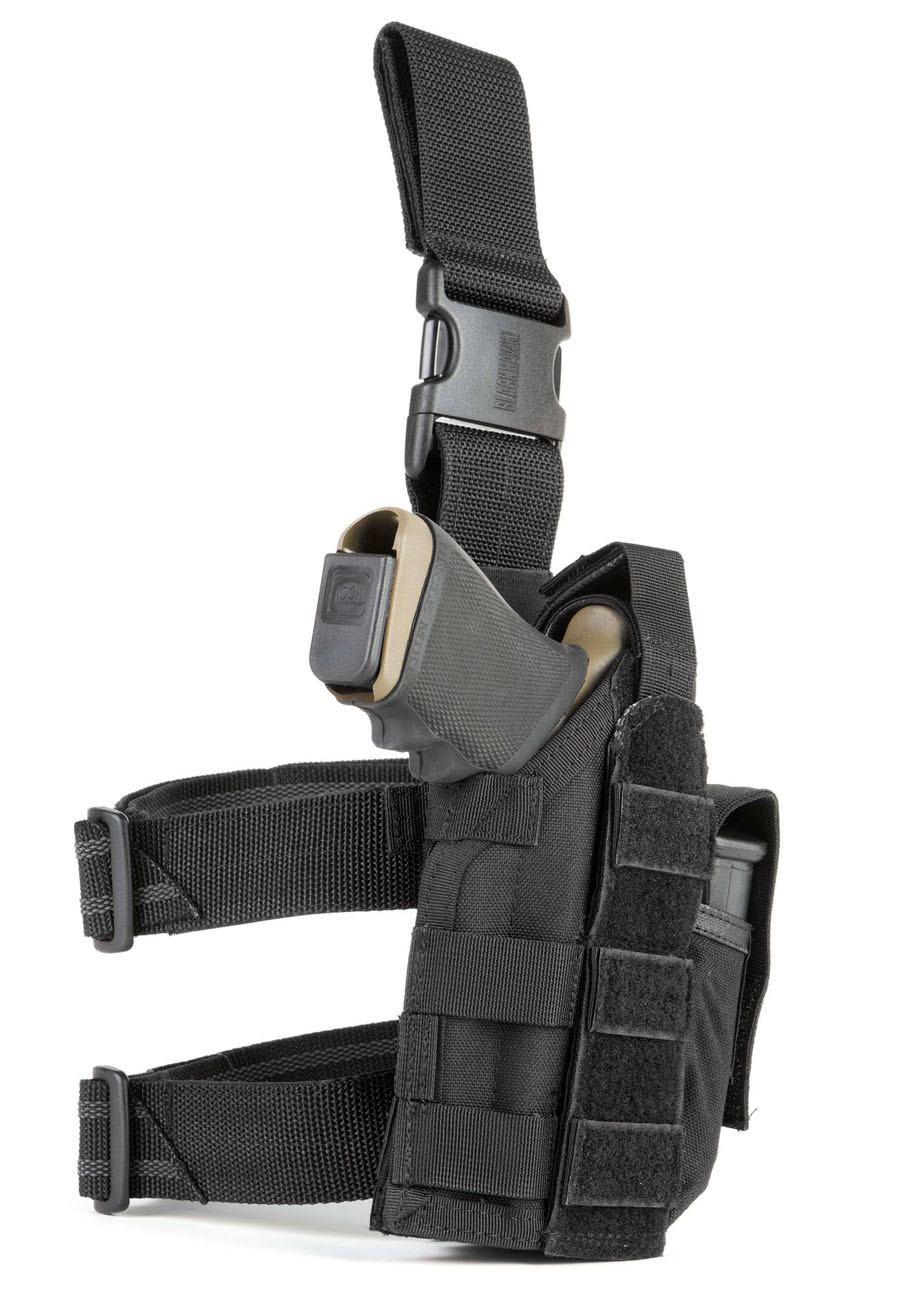 - Se puede usar en una configuración de pierna caída o separada de la plataforma del muslo en cualquier superficie MOLLE (LBV, cinturones guerreros, plataformas para el pecho, etc.)