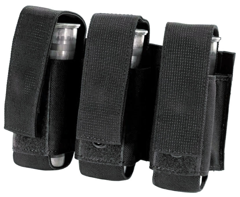 Funda BLACKHAWK! para 3 granadas de 40mm. que se monta en cualquier plataforma STRIKE o PALS/MOLLE tejiendo las correas integrales en la parte posterior de la bolsa dentro y fuera de la cincha de la plataforma.
