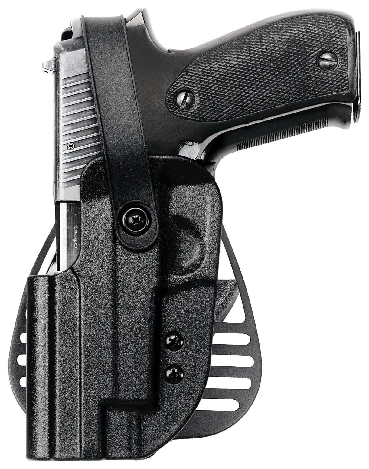 La funda de UNCLE MIKE’S Kydex Paddle con retención interna es una brillante combinación de fuerza y doble retención. Construida con los mismos sistemas de retención que las fundas de servicio de doble retención Pro-2, esta funda además, adopta medidas adicionales de seguridad a la hora de soltarla alineando su dedo a lo largo del borde del arma, siendo mejor que si tenemos el dedo en el disparador, previniendo de disparos accidentales. Una buena elección para operaciones de incógnito o paisano.