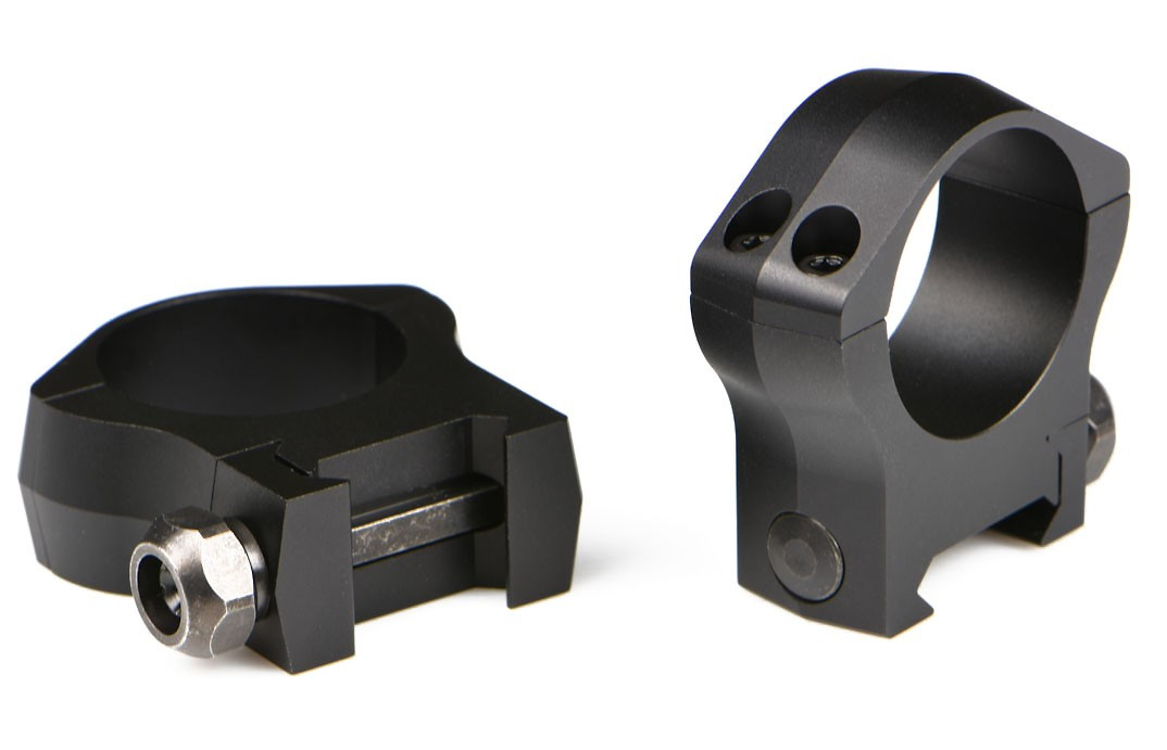 – Las anillas de unión horizontal se colocan en cualquier base Weaver/Picatinny sea de piezas separadas o en una sola pieza.