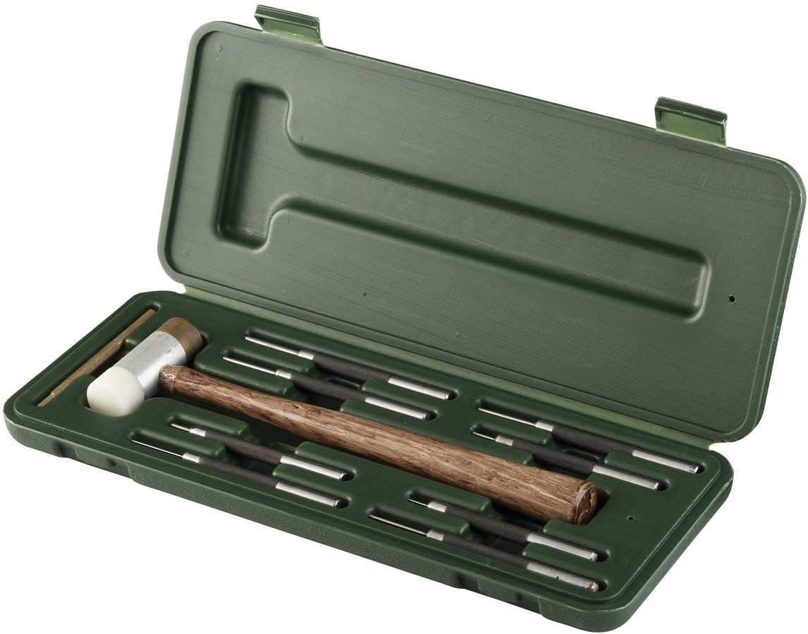 – Juego de punzones de acero de alta calidad con punzón de latón para ajuste de miras.