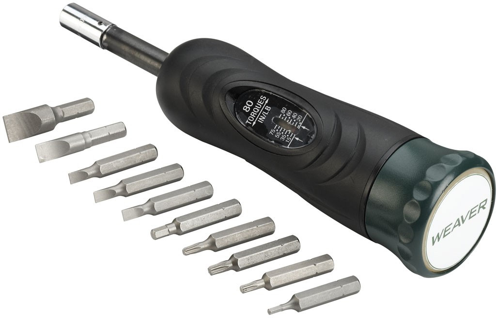 La llave dinamométrica Gunsmithing de Weaver es una herramienta compacta y versátil de armería. Útil para el montaje de visores ópticos. Con una variedad de cabezales para diferentes fijaciones, esta llave le permite marcar fácilmente la presión del tornillo. Este juego de llaves dinamométricas viene con puntas magnetizadas, una caja robusta y una garantía limitada de un año.