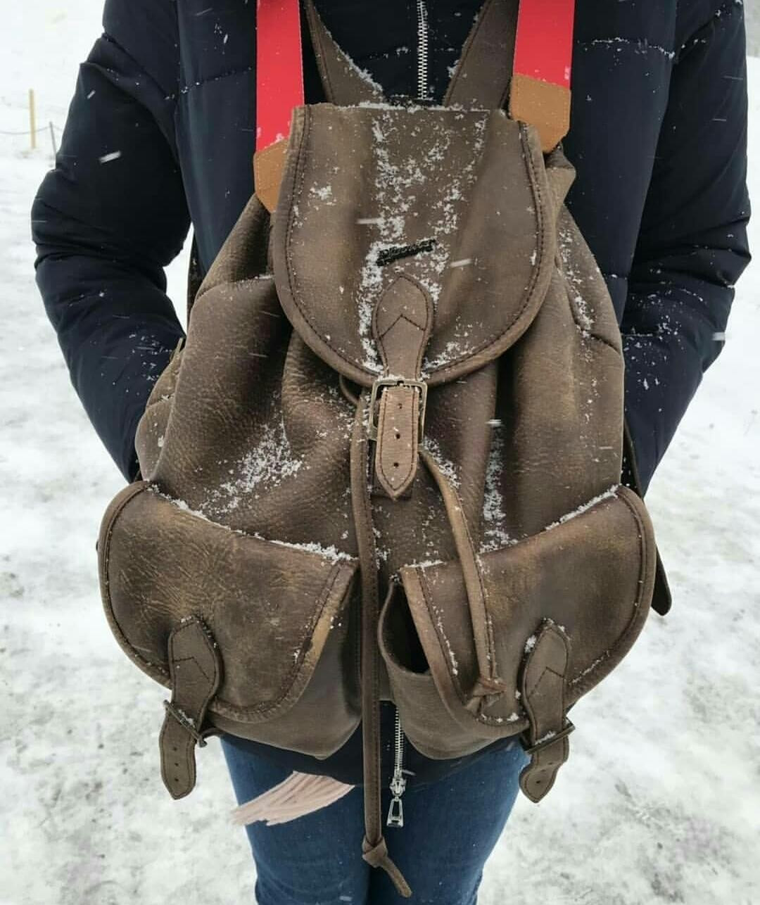 MOCHILA CITY DE PIEL 2 BOLSILLOS MARRON