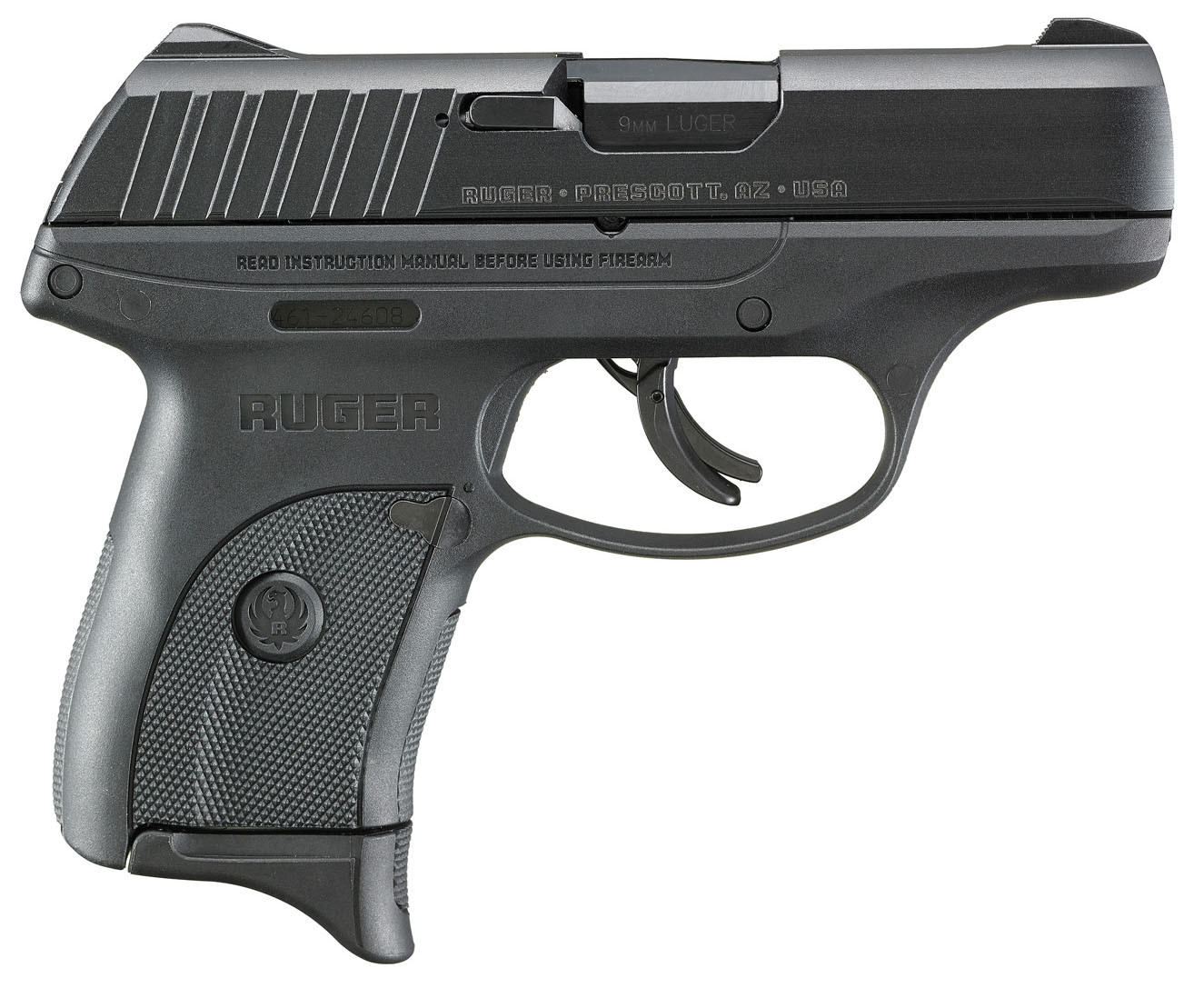 La Ruger EC9s es una pistola para porte oculto fiable y asequible. Cuenta con una corredera de aleación de acero pavonado y endurecido; un armazón de nailon reforzado con fibra de vidrio de alto rendimiento de una sola pieza, con un marcado agresivo en empuñadura, una placa de base del cargador con extensión de empuñadura para mejorar el manejo, sistema de miras fijas de adquisición rápida y seguro manual.