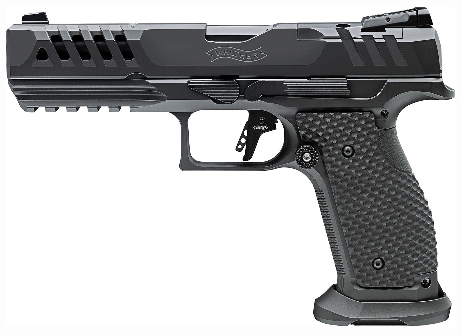 Walther redobla su apuesta en la categoría súper deportiva con la “Black Ribbon”. Esta arma combina las características de primera clase de la Steel Frame Match con elementos esenciales de IPSC, como el gatillo DTP, el alza micrométrica, paneles de empuñadura ultra agresivos y un botón de liberación del cargador extendido.