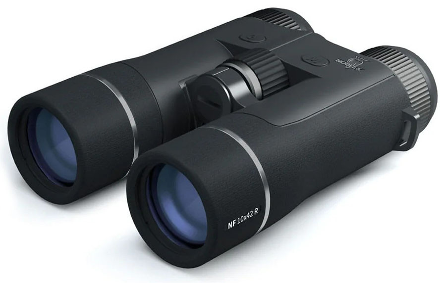 El NF 10×42 R de la línea avanzada de NOBLEX ofrece al usuario una óptica de alto rendimiento con elementos de lentes multicapa y un amplio campo de visión. El telémetro láser integrado determina una distancia segura de hasta 1.200 metros (objetos más reflectantes incluso hasta 2.300 metros). Con solo presionar un botón, el láser Clase 1 del moderno telemetro realiza una medición con una precisión de +/-1 metro en solo 0,3 segundos. Además, la medición de objetos en movimiento se realiza de forma continua en el modo de escaneo. El valor medido se lee en la pantalla OLED roja de alto contraste reflejada en el centro y también se puede visualizar de forma fiable sobre un fondo oscuro. El brillo de la pantalla se puede ajustar en seis intensidades.