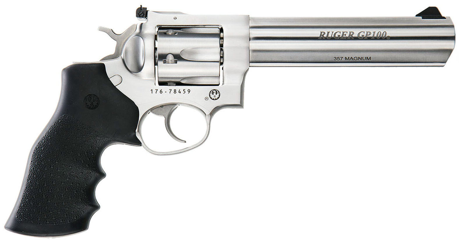 Esta referencia del modelo GP100 cuenta con una empuñadura de goma Hogue® Monogrip® que ofrece una excelente ergonomía, reduciendo el retroceso y proporcionando una sujeción firme. Además, el GP100 permite la personalización de la empuñadura con paneles de empuñadura intercambiables, lo que permite a los tiradores adaptar el revólver al tamaño de su mano y sus preferencias. Viene equipado con punto de mira en rampa y alza trasera totalmente ajustable en altura y deriva.