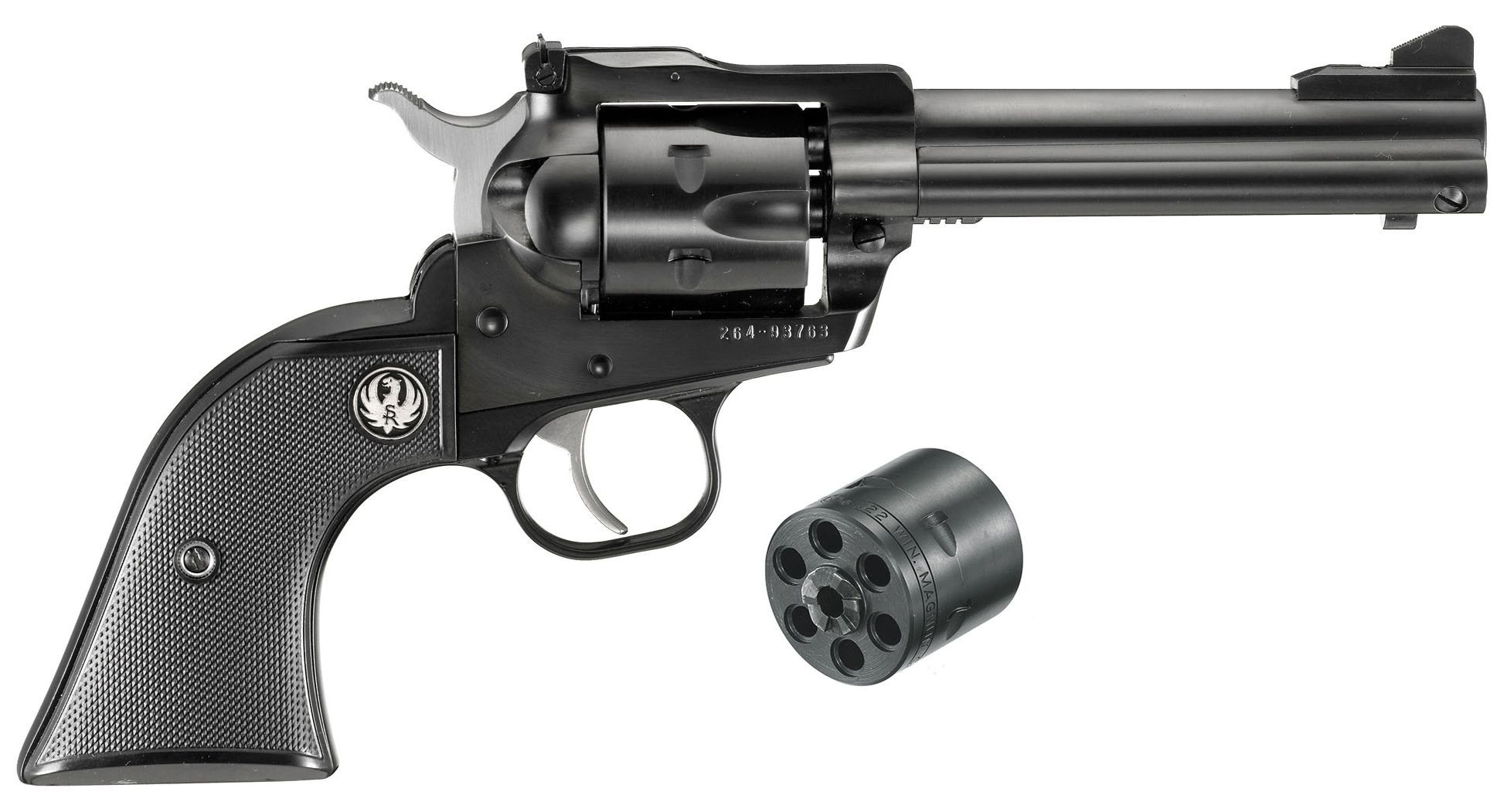 El Ruger New Model Single Six Convertible incluye dos tambores intercambiables sin herramientas, uno para munición del calibre 22LR y otro para munición 22 WMR.