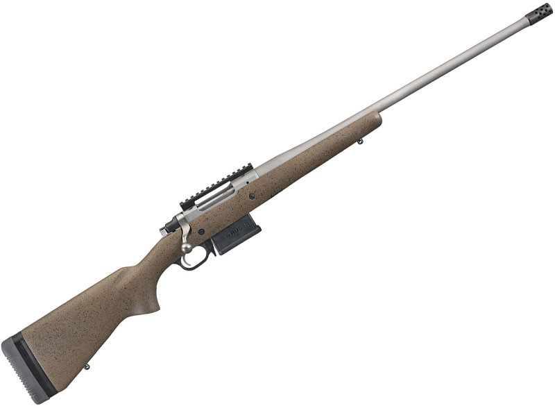 - Carril Picatinny de 20 MOA asegurado con cuatro tornillos 8-40, instalado de serie en el sistema integrado de montaje para monturas patentado por Ruger, mecanizado directamente en la acción de acero inoxidable.