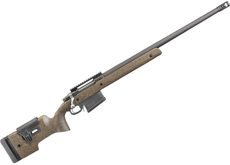 • Freno de boca hibrido Ruger Precision® para reducir eficazmente el retroceso a la vez que minimiza el ruido y la explosión a los costados del tirador (paso de hilo 5/8″-24).