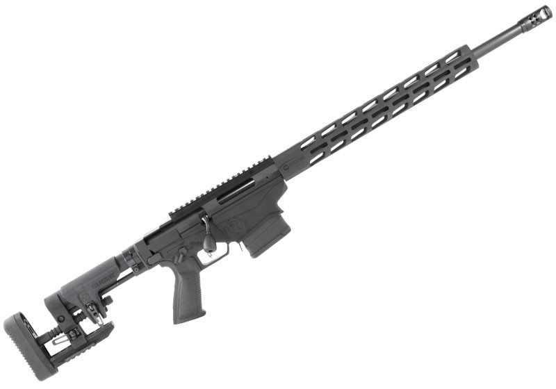 El rifle Ruger Precision incorpora una trayectoria de retroceso en línea directamente desde la parte trasera del armazón hasta la culata, eliminando la necesidad de un sistema de “chasis” o encamado tradicional, y proporciona un potencial de precisión máximo al simplificar la respuesta del rifle al retroceso. La culata Ruger Precision MSR es ajustable en longitud y altura, ofreciendo un ajuste adecuado en una amplia gama de tiradores y posiciones de tiro. El ajuste de la longitud y la altura se cambian de forma fácil y precisa, asegurando que no se moverán mientras se dispara. La culata también cuenta con múltiples puntos de sujeción de correas QD, un carril Picatinny inferior para la fijación de apoyos y una cantonera de goma suave. La bisagra de culata plegable a la izquierda (que proporciona acceso al cerrojo) está unida a un tubo amortiguador de estilo AR y acepta culatas de estilo AR.