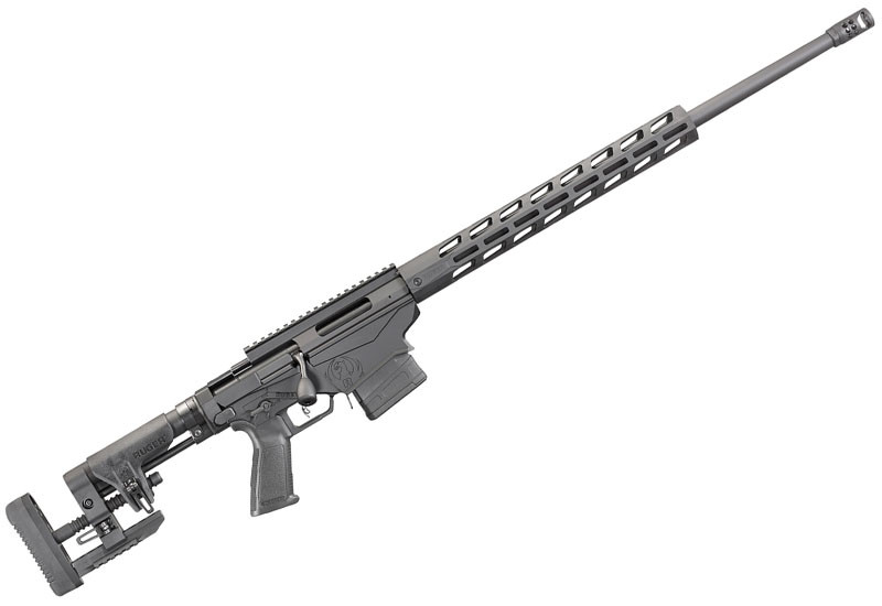 - El cañón de contorno medio (.75″ en la boca) cuenta con un freno de boca híbrido “Ruger Precision Rifle” para reducir eficazmente el retroceso a la vez que minimiza el ruido (paso de hilo 5/8″-24).