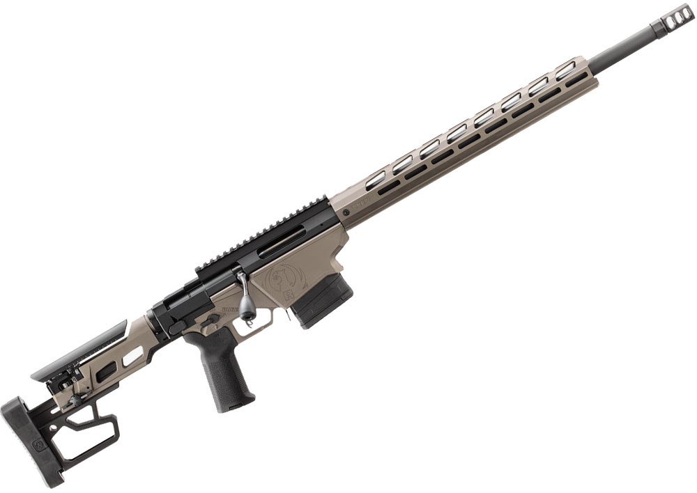 Las características del nuevo rifle Ruger Precision incluyen: un cañón de contorno pesado forjado y martilleado en frío; un freno de boca mejorado; una empuñadura de pistola vertical Magpul MOE-K2; y un cerrojo con revestimiento DLC negro. El guardamanos de aluminio está equipado con ranuras M-LOK para accesorios compatibles y también cuenta con un rail ARCA mecanizado en la parte inferior. El compartimento del cargador, el guardamanos y el cuerpo de la culata lucen un atractivo acabado Cerakote de bronce ahumado.
