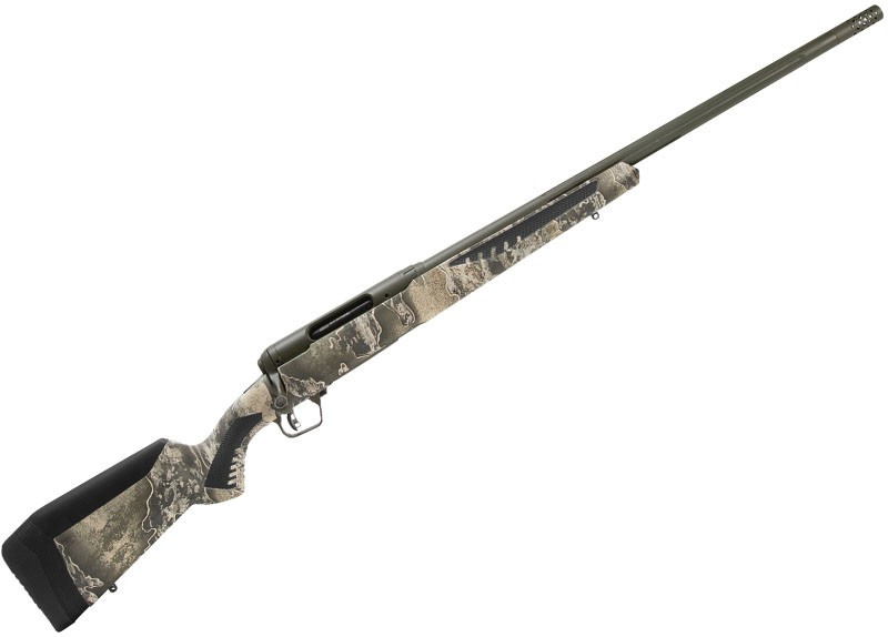 El cañón que monta el SAVAGE 110 Timberline es de contorno medio de 24” (609 mm.) acanalado, fabricado en acero al carbono y está estriado mediante la técnica de “button rifling”, de la que SAVAGE es un auténtico especialista, de ahí la afamada precisión de sus cañones. El cañón, armazón y demás partes principales vienen con un acabado Cerakote OD Verde que aporta una protección especial contra la corrosión. Posee cargador desmontable con capacidad para 2 balas.