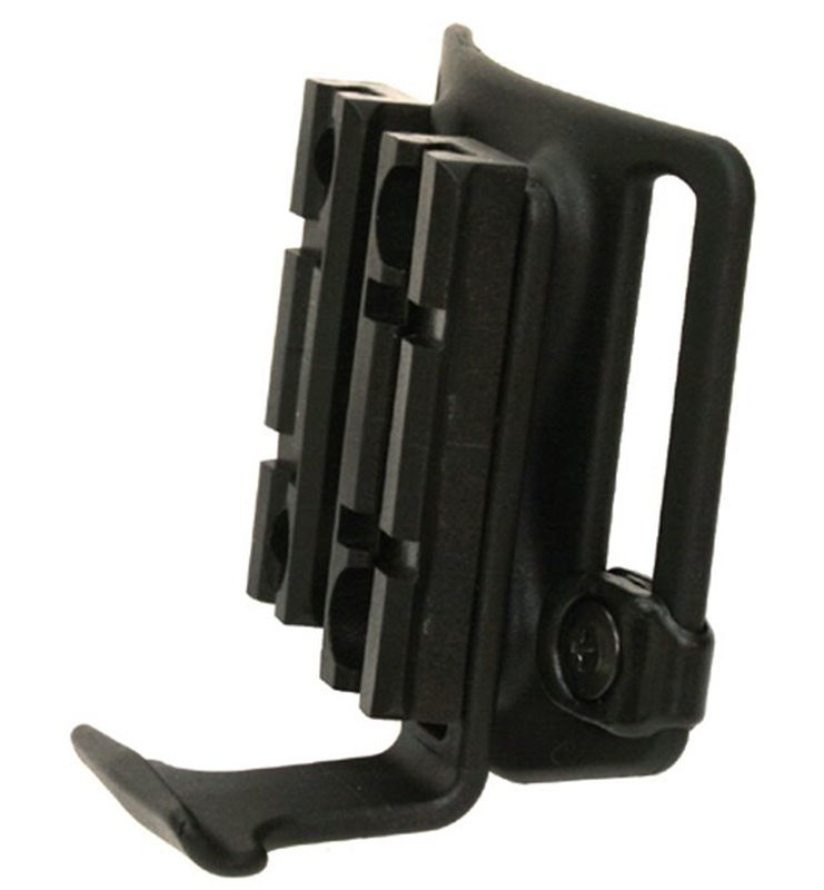 Portador diseñado para linternas que se montan sobre carriles picantinny, como la familia de linternas Streamlight® M-3 y M-6, al igual que otros modelos de inferior tamaño. Viene con 2 carriles para poder acoplar cualquier otro accesorio que vaya sobre carril, como por ejemplo cargadores.