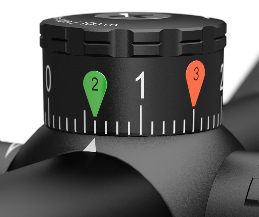 La nueva torreta balística (BT) elimina cualquier conjetura a la hora de apuntar a diferentes distancias. Se puede montar de forma independiente en unos pocos y sencillos pasos y, gracias a las pegatinas incluidas y claramente identificables, se pueden colocar marcas 100 % precisas para cada balística. Si fuera necesario, pueden retirarse o ajustarse rápida y fácilmente. El producto incluye 120 pegatinas de marcado (en forma de gota), impresas, de color naranja, verde y blanco.